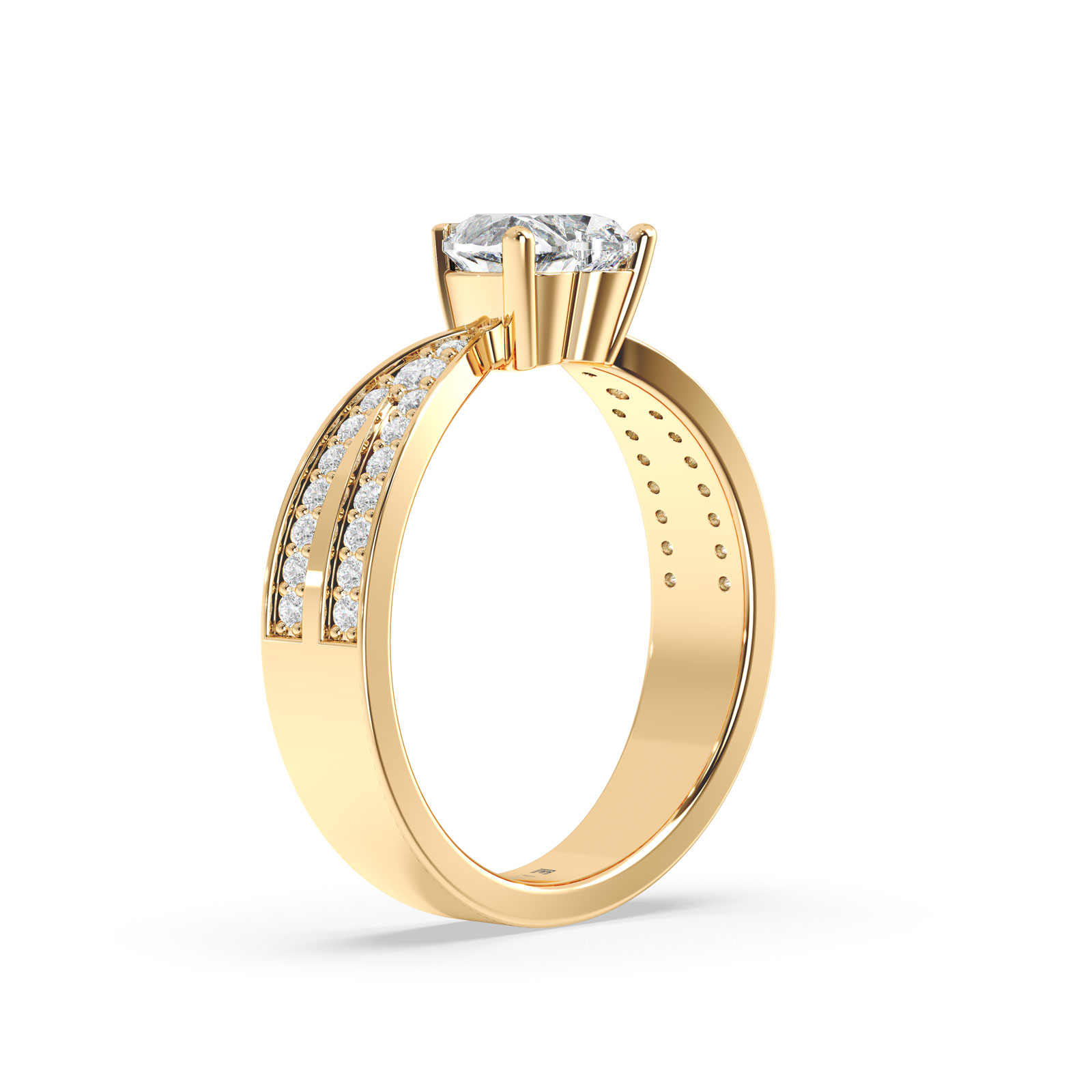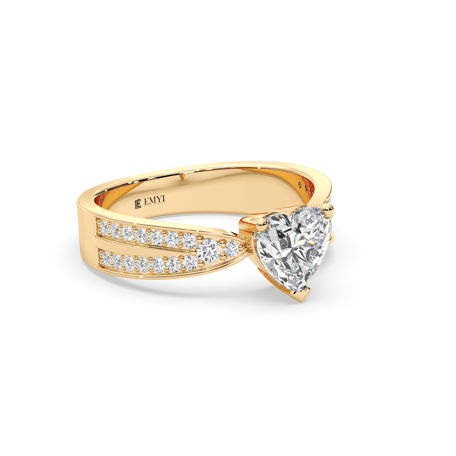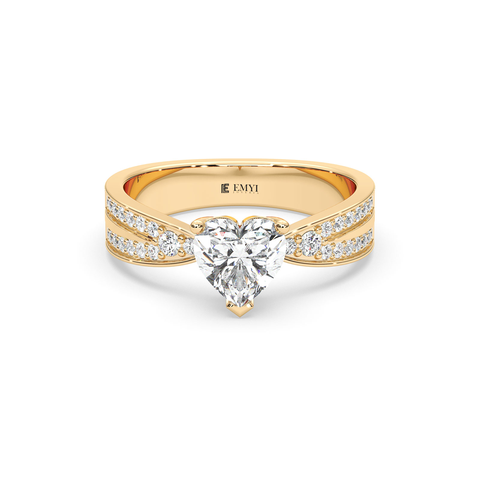 Este diseño equilibra lo clásico y lo moderno, ideal para quienes buscan una joya con presencia, perfecta para ocasiones especiales o regalos con gran significado. La piedra en forma de corazón está acompañada de pequeños detalles laterales que refuerzan su simetría y elegancia.
