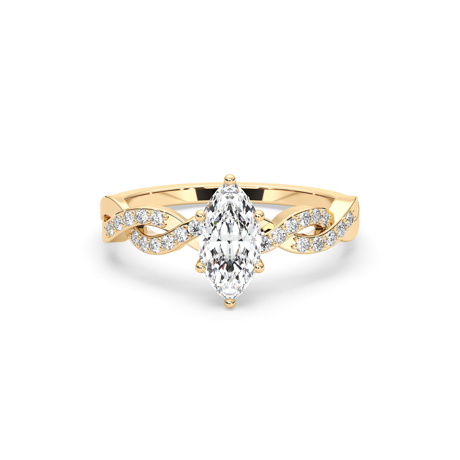 El anillo Selena destaca por su piedra central corte marquesa y su diseño entrelazado lleno de zirconias que realzan su brillo. Esta forma alargada estiliza visualmente los dedos y aporta un toque sofisticado y diferente.